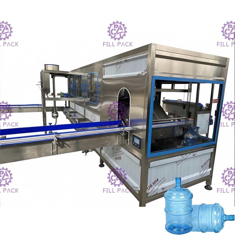 গ্যালন বোতল ভর্তি মেশিনঃ একক শরীর হিসাবে ইন্টিগ্রেটেড ফ্লাশিং, ভর্তি এবং ক্যাপিং।